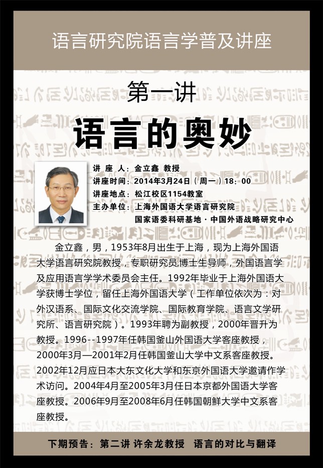 本学期语言研究院学术普及讲座安排如下: